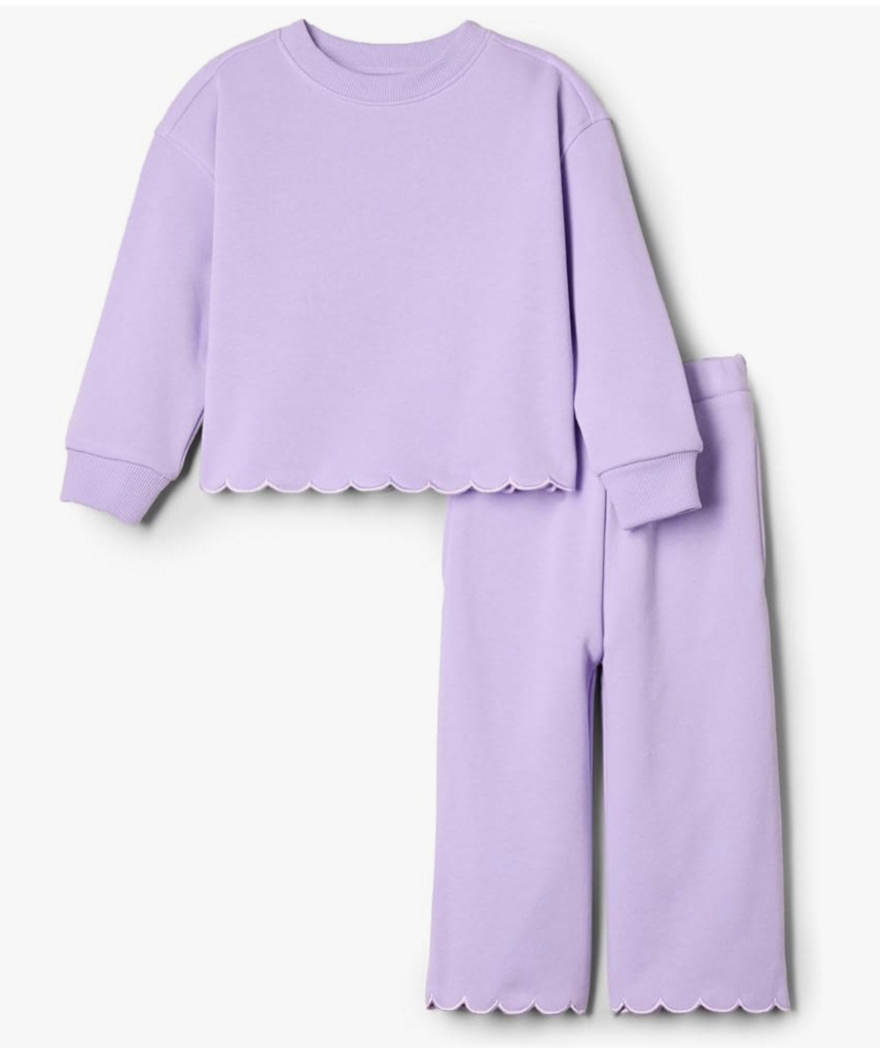 French Terry scallop sets in ivory or lilac. Ready to ship! Sizes 2T-8 years.